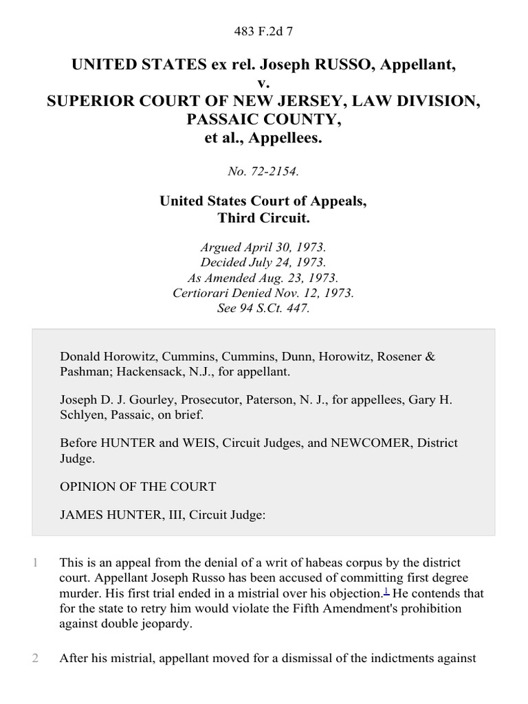 United States Ex Rel Joseph Russo v Superior Court of New Jersey Law