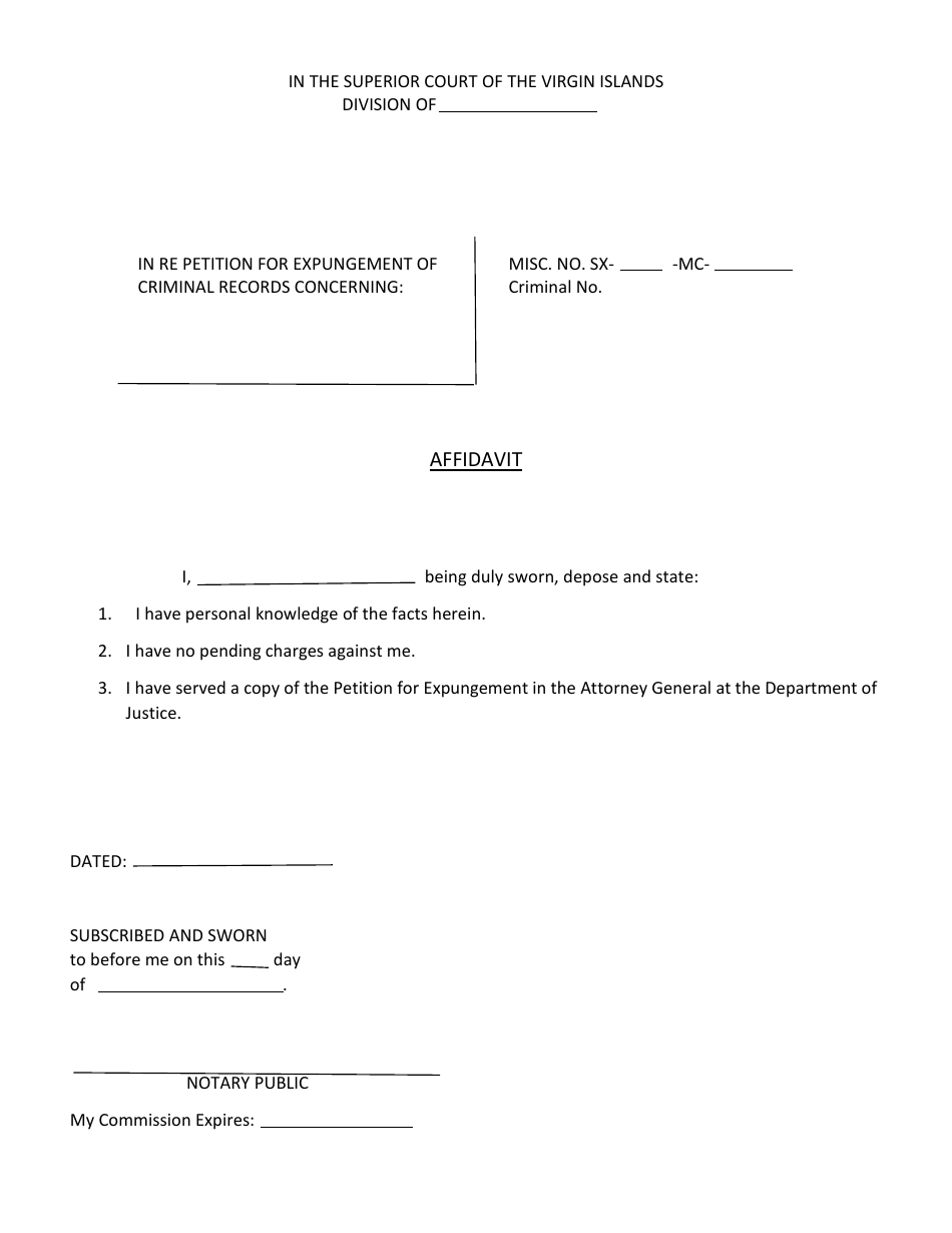 Virgin Islands Expungement Affidavit Fill Out Sign Online and