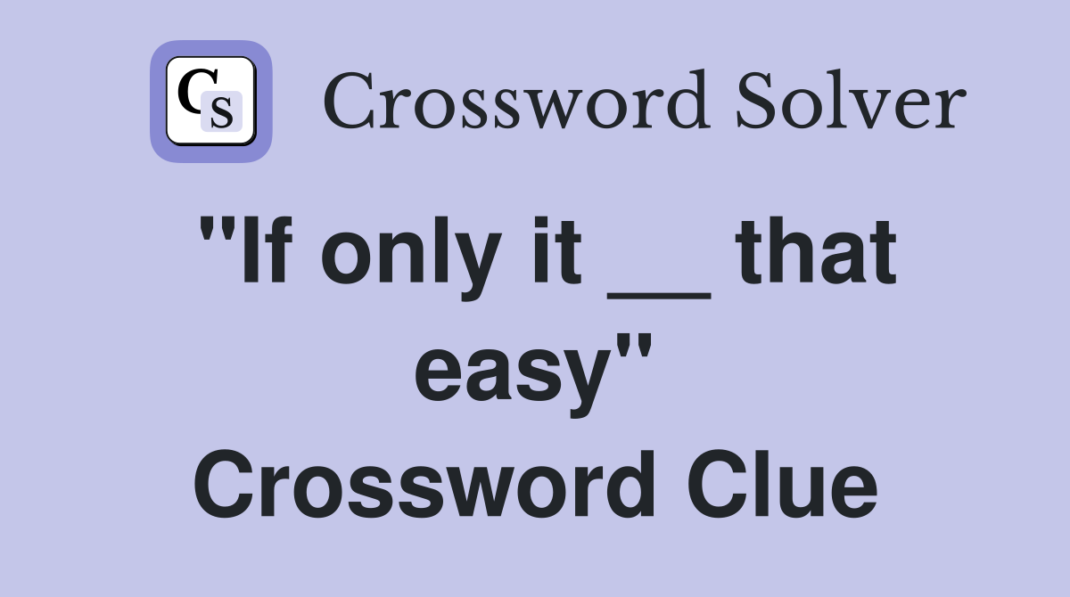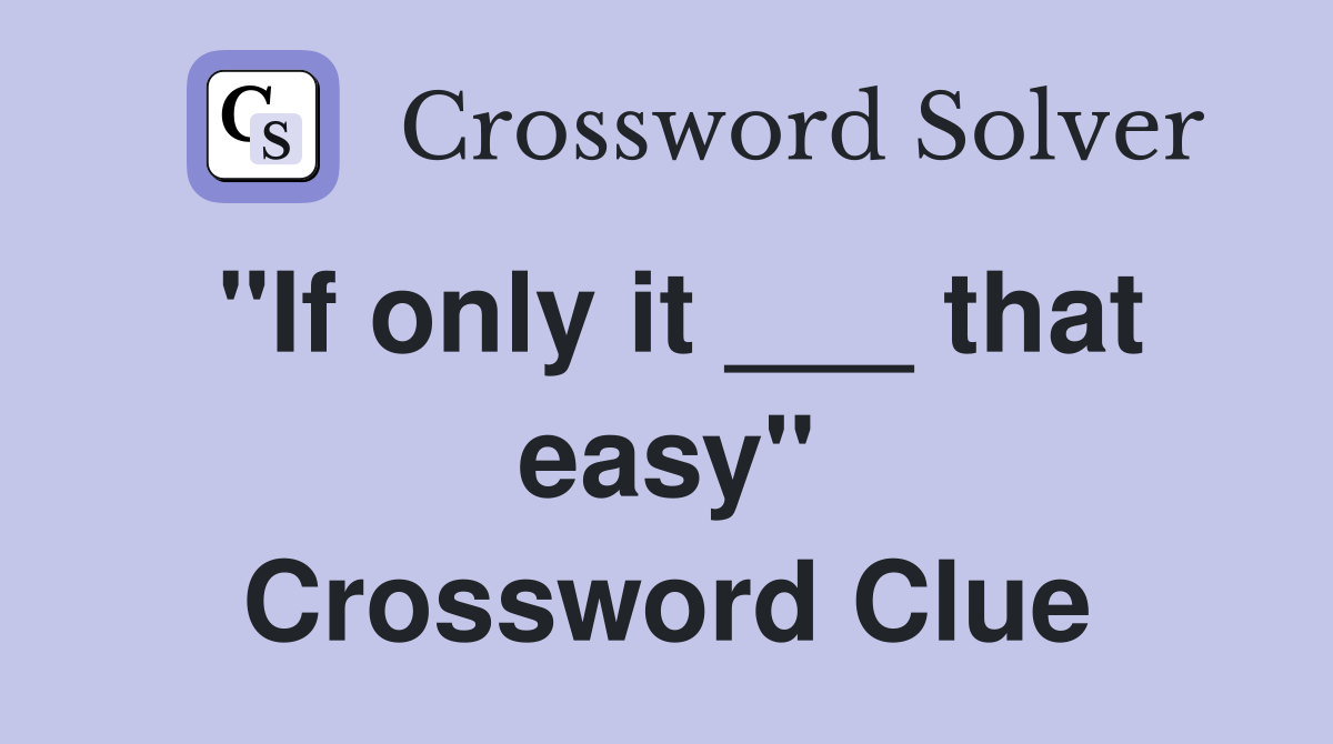 quot If only it that easy quot Crossword Clue Answers Crossword Solver