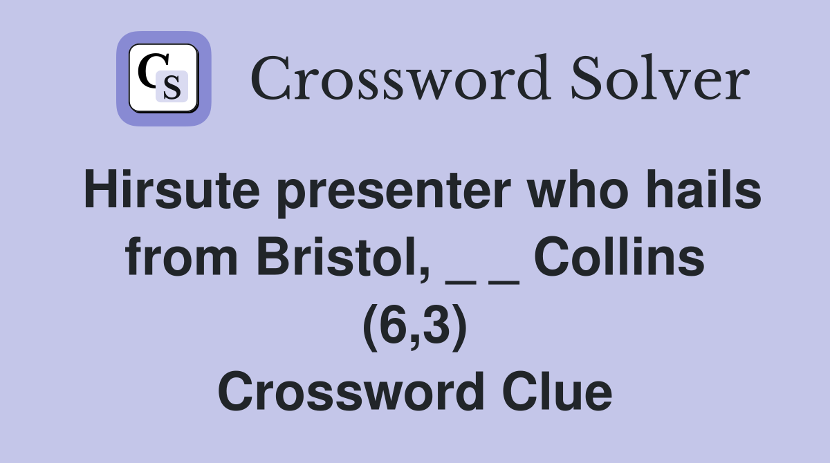 Hirsute presenter who hails from Bristol Collins (6 3) Crossword
