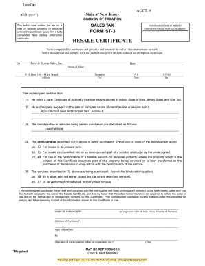 Fillable Online www state nj ustreasurytaxationST 3 Resale Certificate