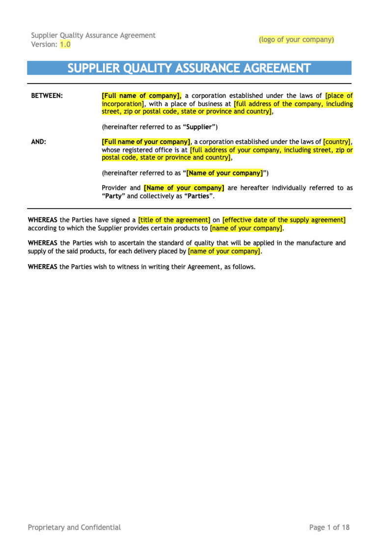 Here are some of the images for Supplier Quality Agreement Template that we found in our website database.