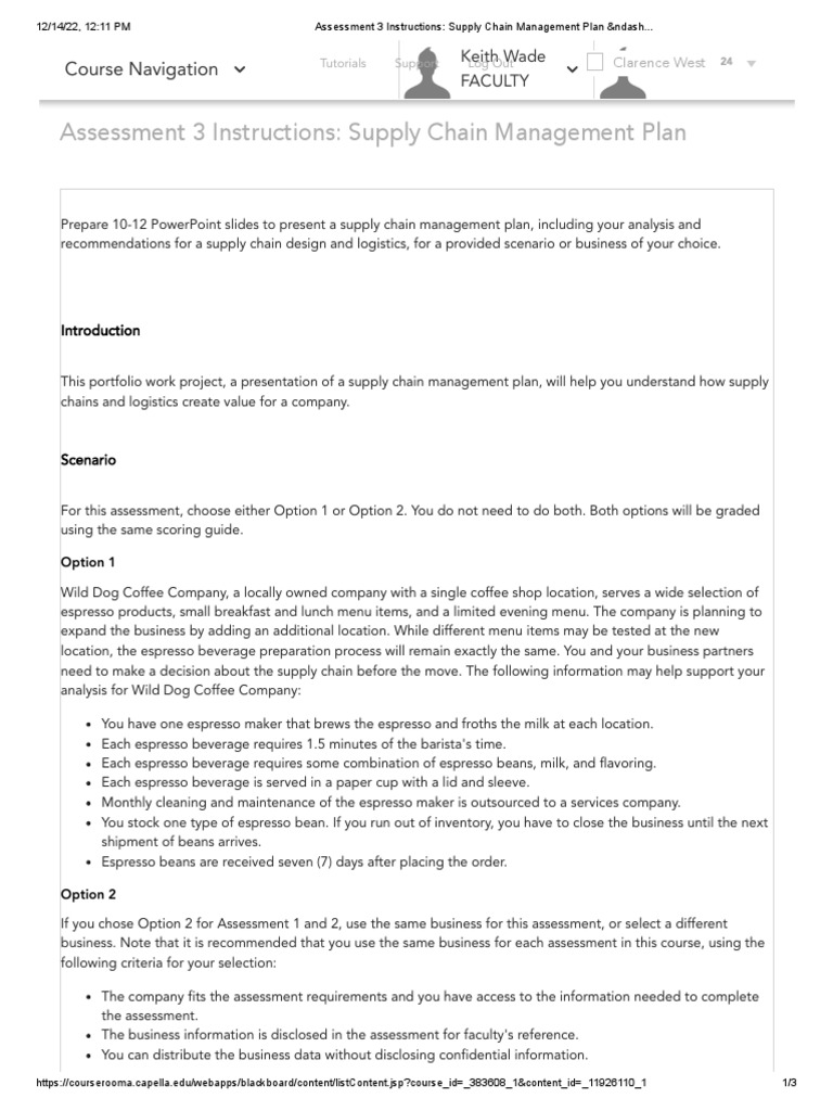 Assessment 3 Instructions Supply Chain Management Plan ndash