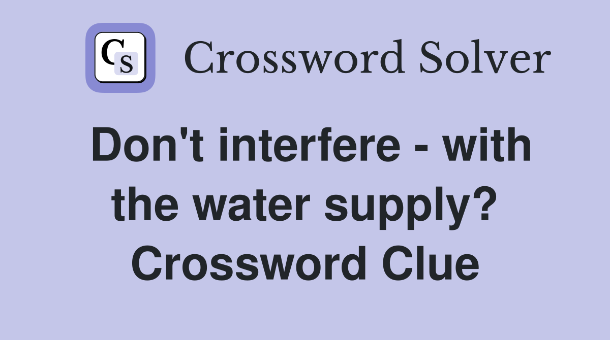 Don #39 t interfere with the water supply? Crossword Clue Answers