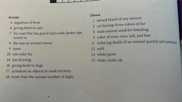 Solved chapter 18 crossword puzzle Dog and Cat terms Supply Chegg com