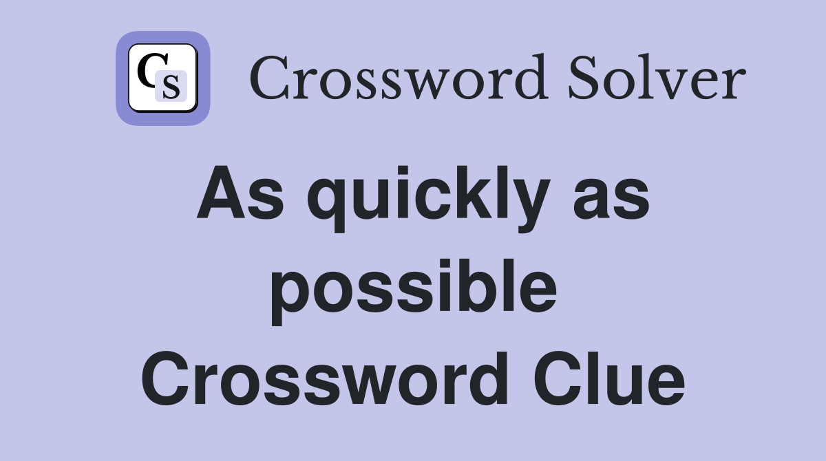 As quickly as possible Crossword Clue Answers Crossword Solver