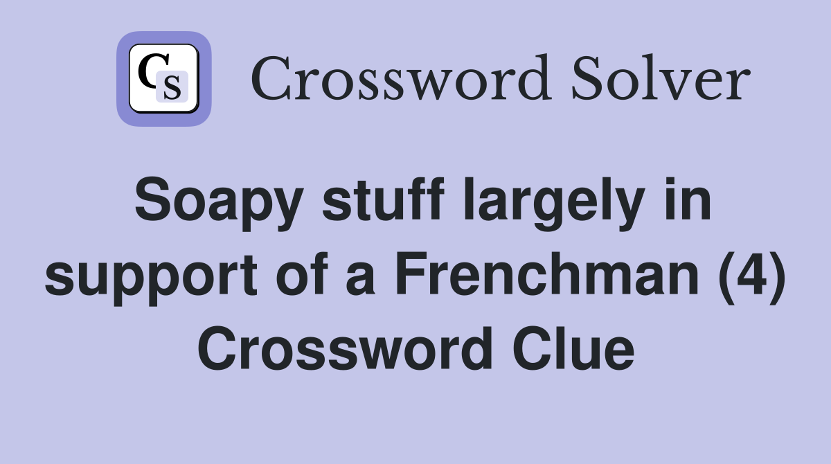 Soapy stuff largely in support of a Frenchman (4) Crossword Clue