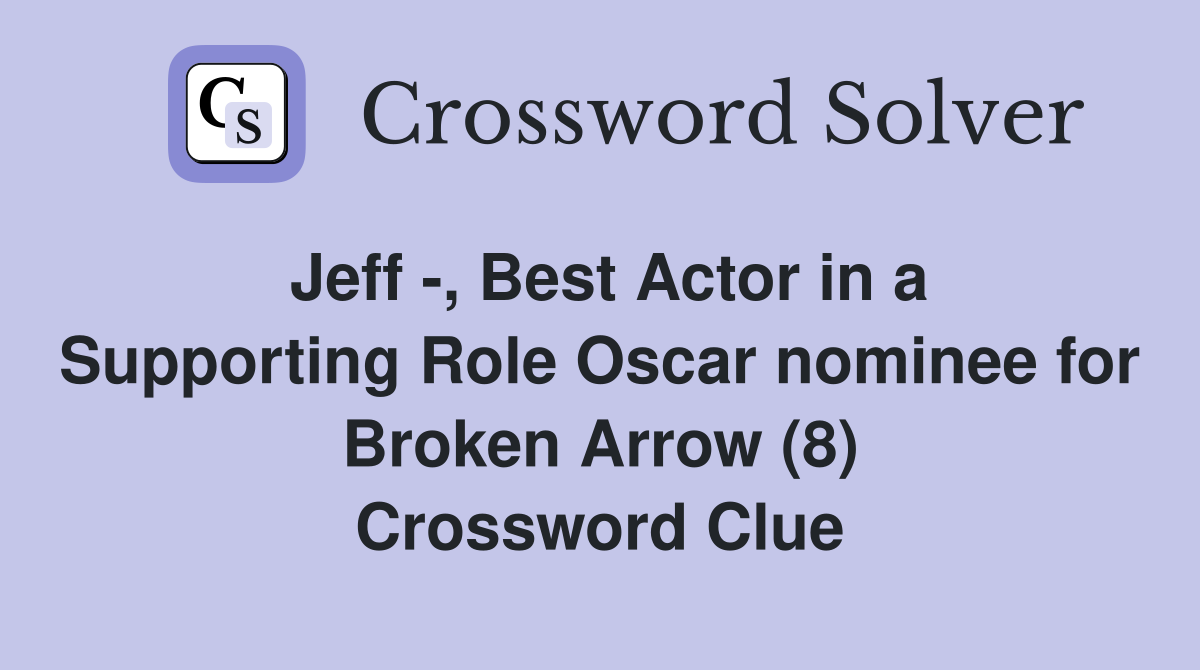 Jeff Best Actor in a Supporting Role Oscar nominee for Broken Arrow