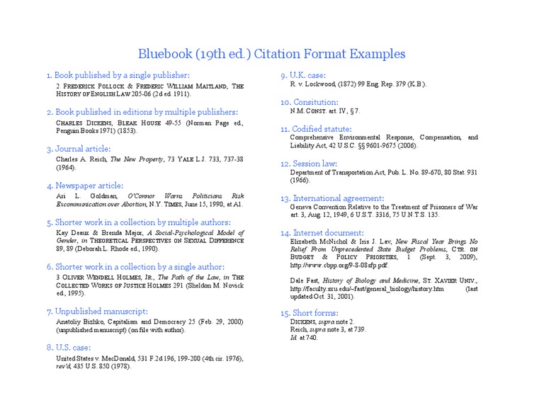 Bluebook (19th Ed ) Citation Format Examples PDF Government