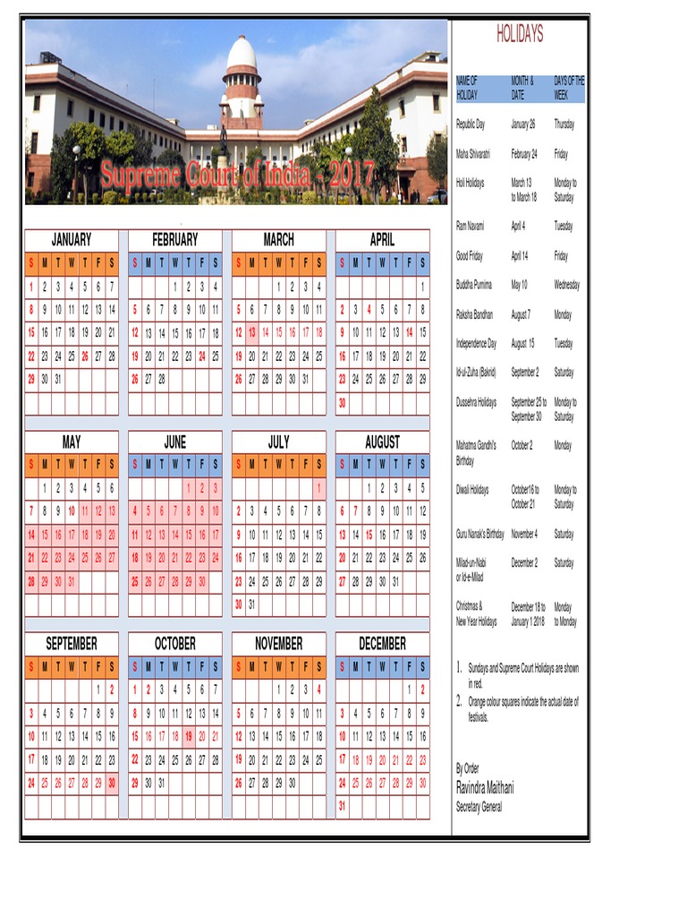 Supreme Court Calender 2017 PDF Traditions Public Holiday