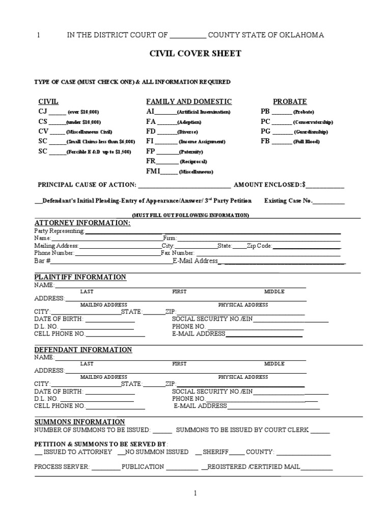 Civil Cover Sheet PDF