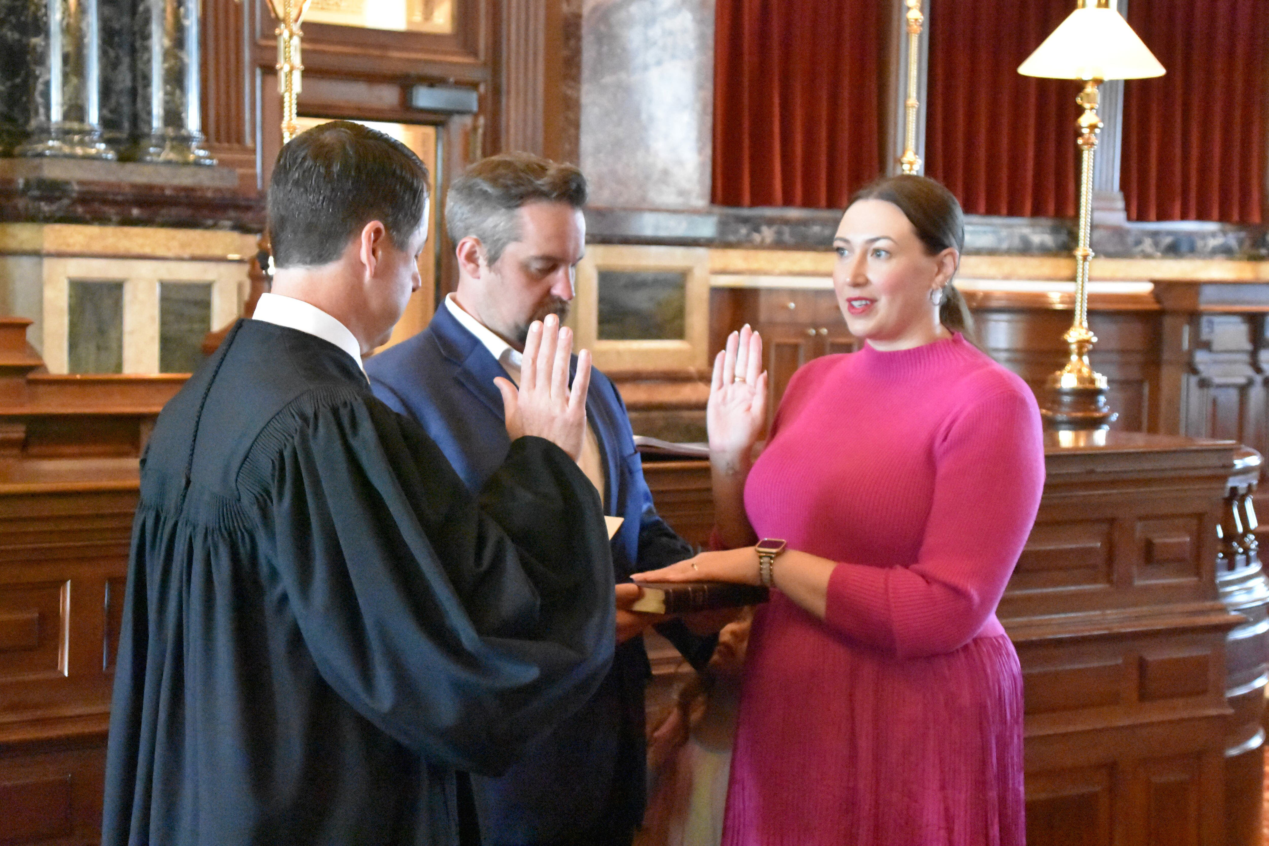 Democrat Catelin Drey sworn in to Iowa Senate