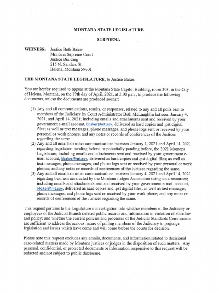 Montana Legislature Subpoenas Supreme Court Justices PDF