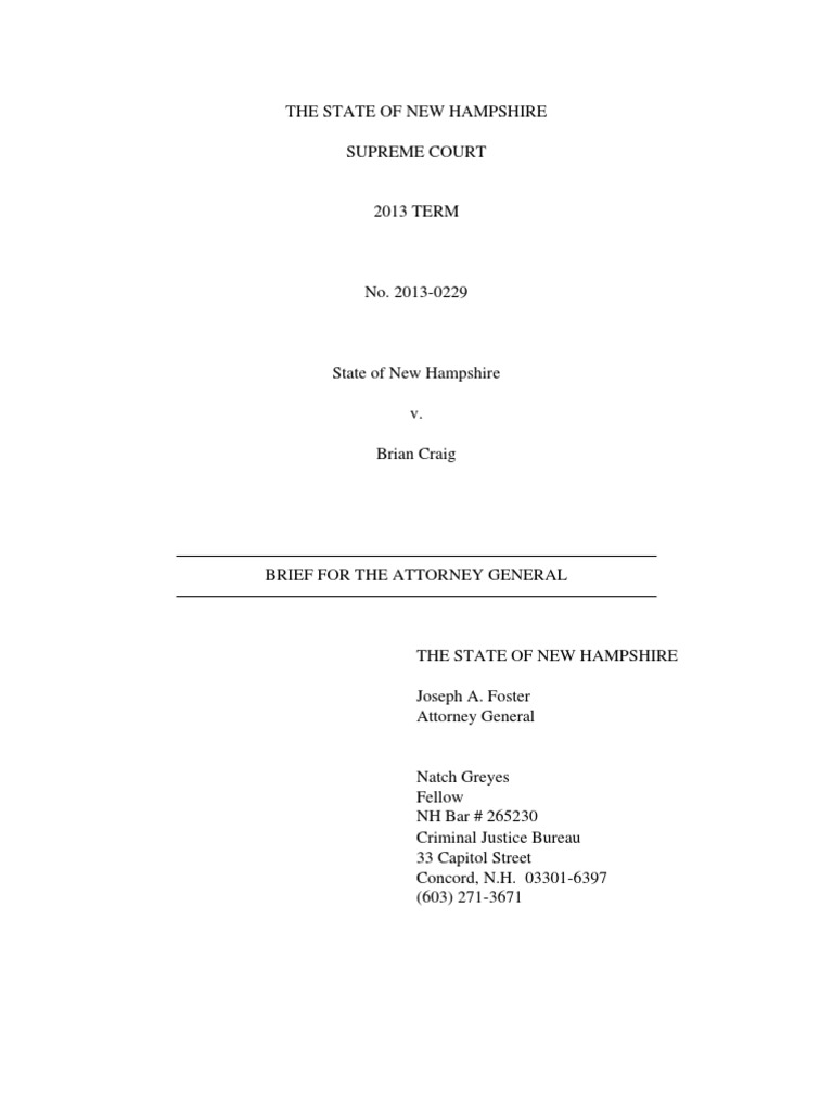 State v Craig Brief For The State New Hampshire Supreme Court PDF
