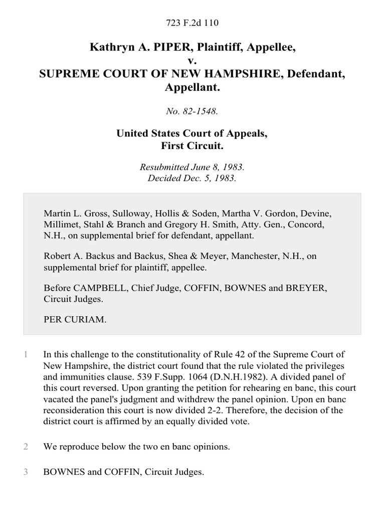 Supreme Court Of New Hampshire V Piper
