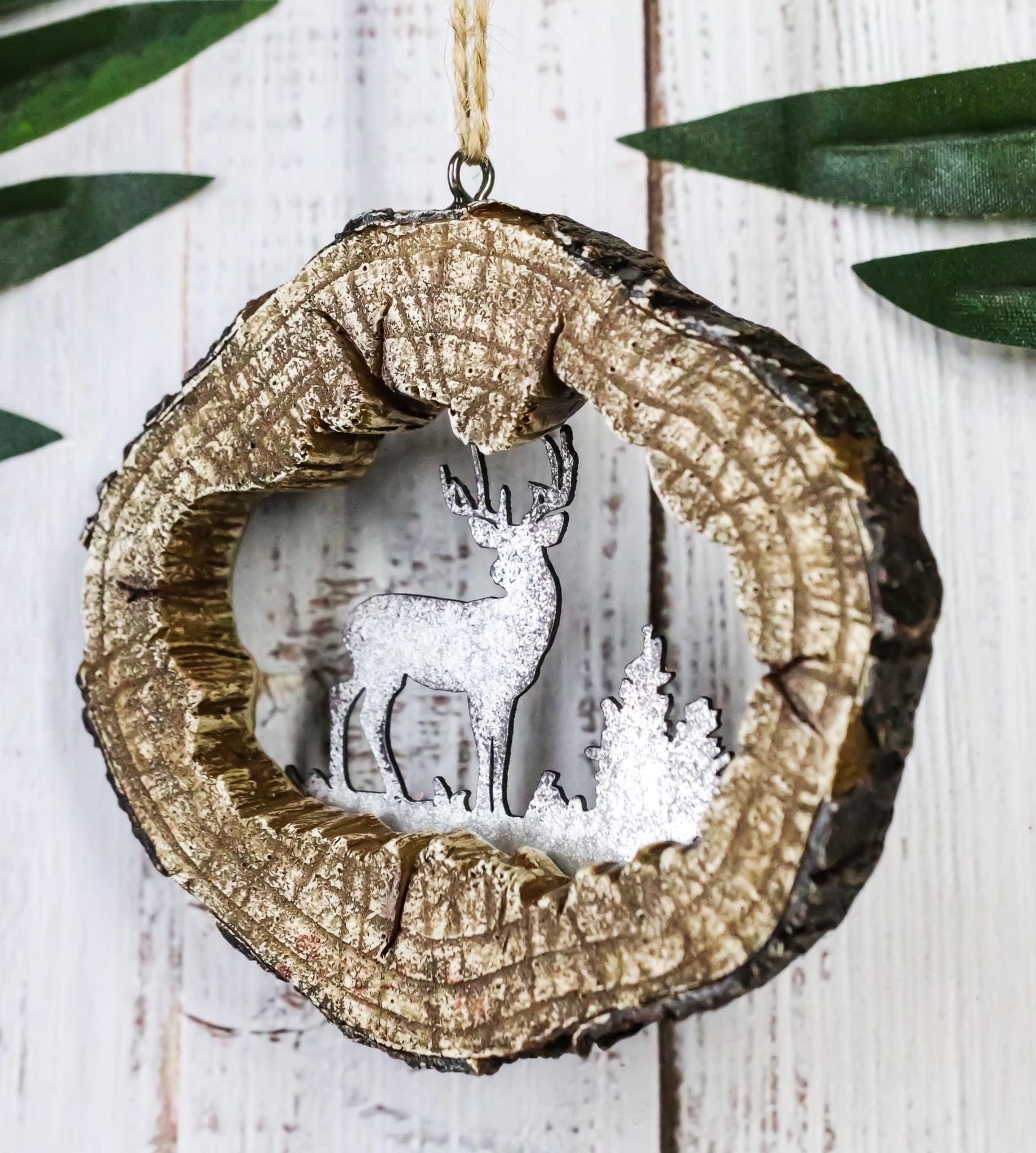 Rustic Western Stag Deer Faux Wood Log Slice Set of 4 Christmas Tree