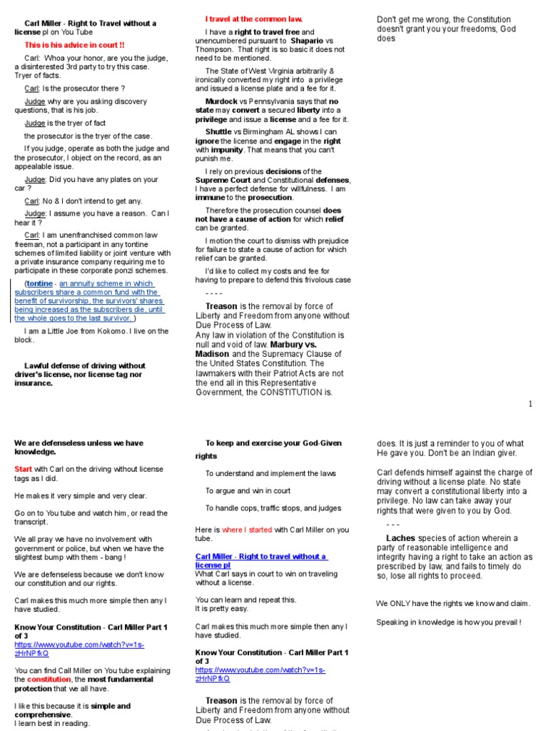 Carl Miller Right To Travel Without A License Plate PDF Freedom