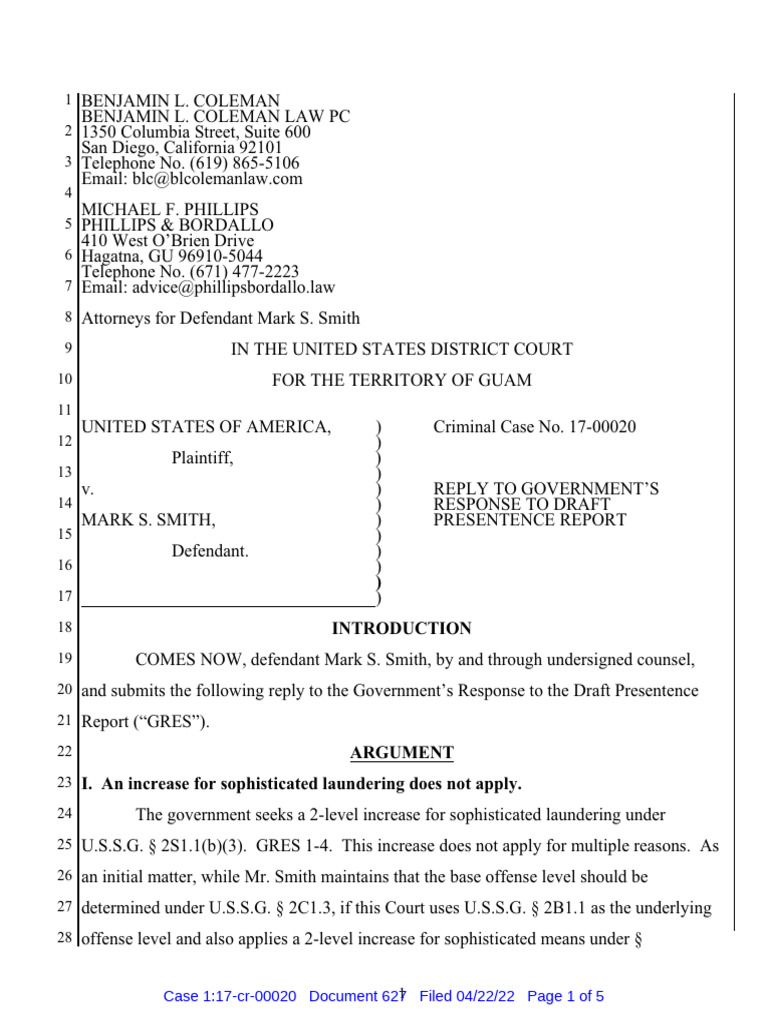 Smith 627 Reply in Support of Objection To Presentence Report PDF
