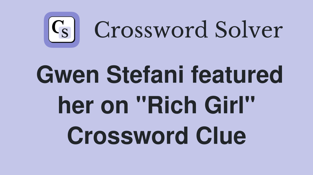 Gwen Stefani featured her on quot Rich Girl quot Crossword Clue Answers