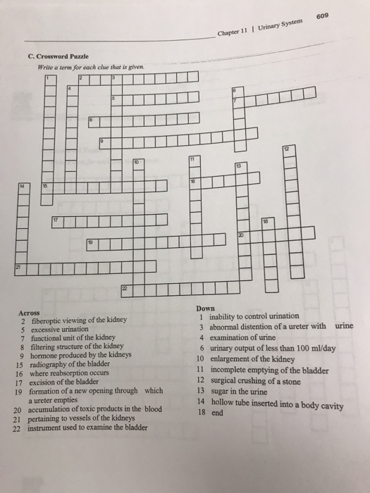 Solved 609 Chapter 11 I Urinary System C Crossword Puzzle Chegg com