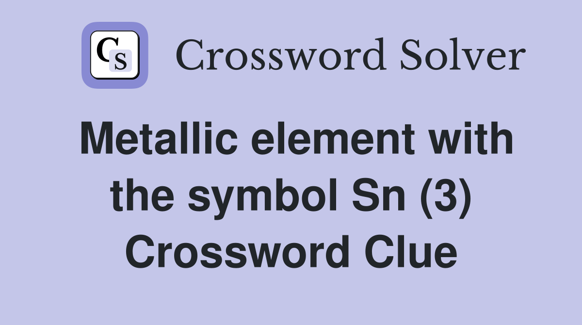Metallic element with the symbol Sn (3) Crossword Clue Answers