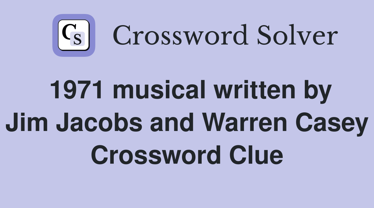 1971 musical written by Jim Jacobs and Warren Casey Crossword Clue
