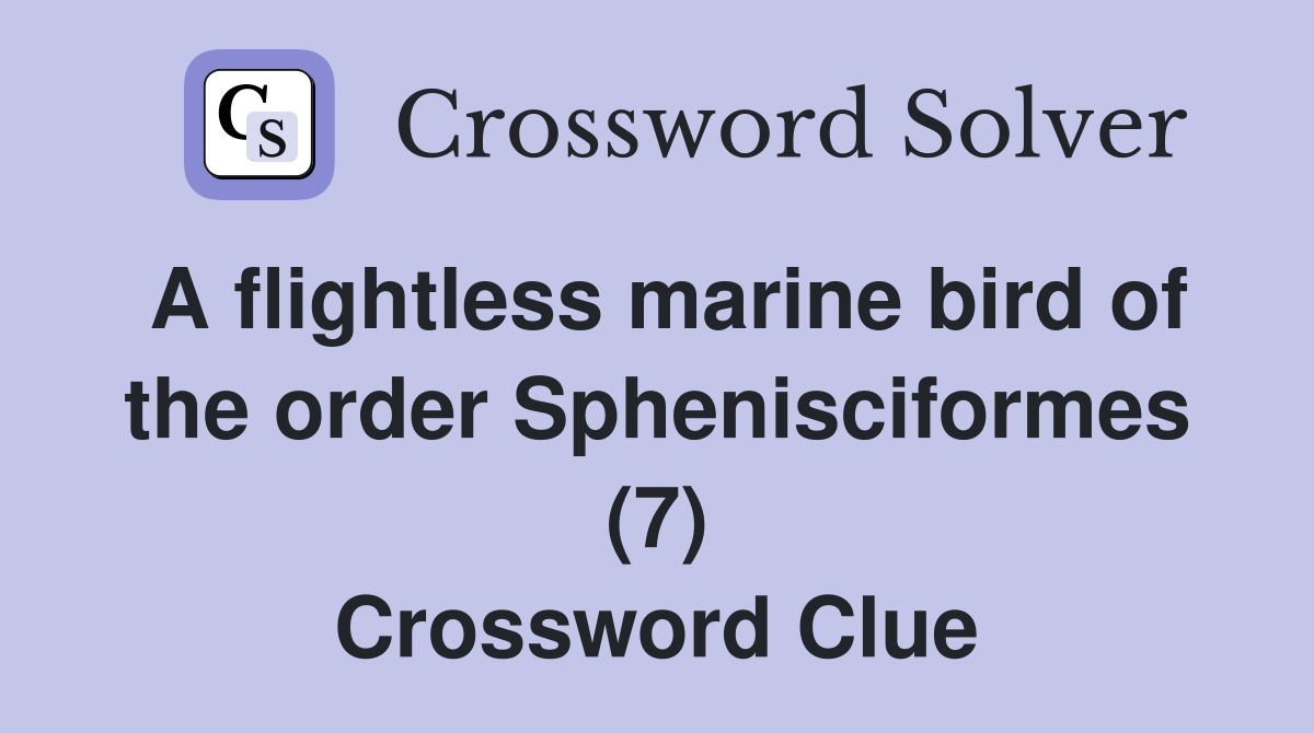 A flightless marine bird of the order Sphenisciformes (7) Crossword