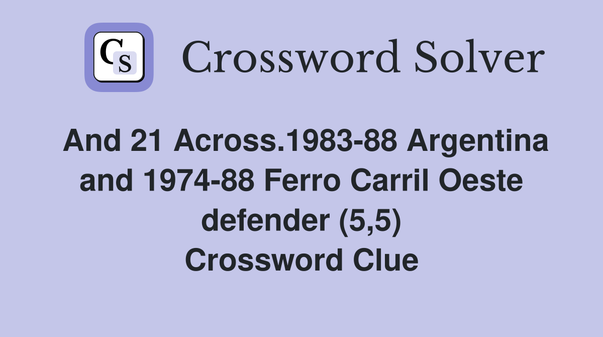 And 21 Across 1983 88 Argentina and 1974 88 Ferro Carril Oeste defender