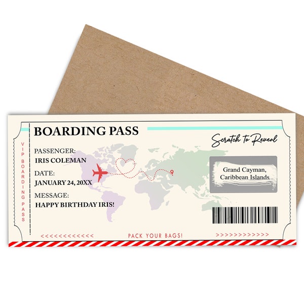 Birthday Boarding Pass Gift Ticket Surprise trip reveal Ticket