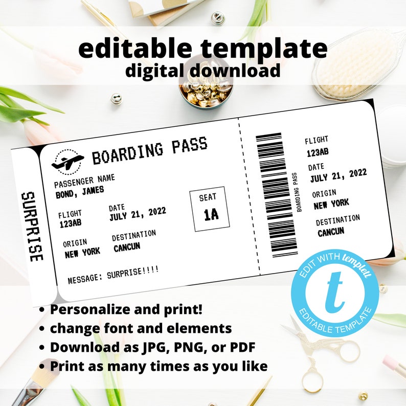 Boarding Pass Template Surprise Trip Announcement Printable Etsy