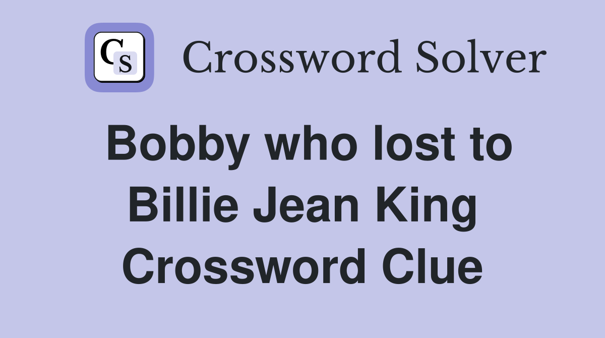 Bobby who lost to Billie Jean King Crossword Clue Answers Crossword