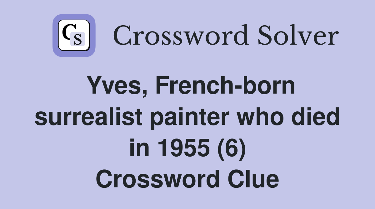 Yves French born surrealist painter who died in 1955 (6) Crossword