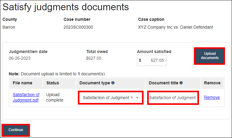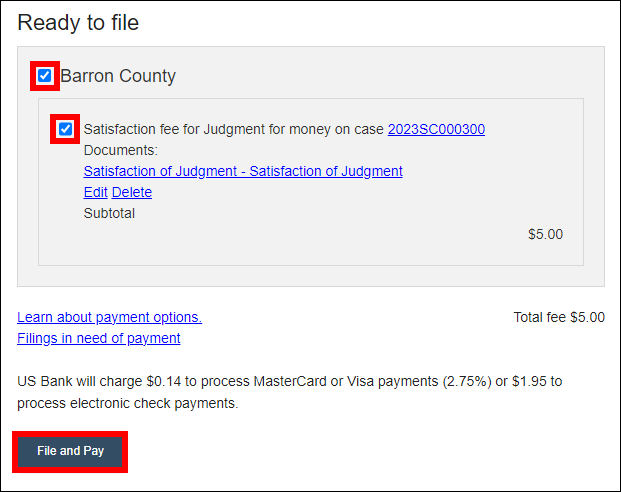 Circuit Court eFiling Satisfying a judgment Wisconsin Court System