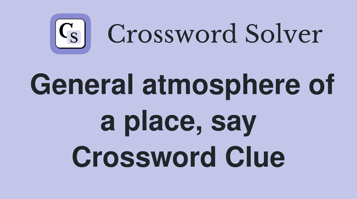General atmosphere of a place say Crossword Clue Answers Crossword