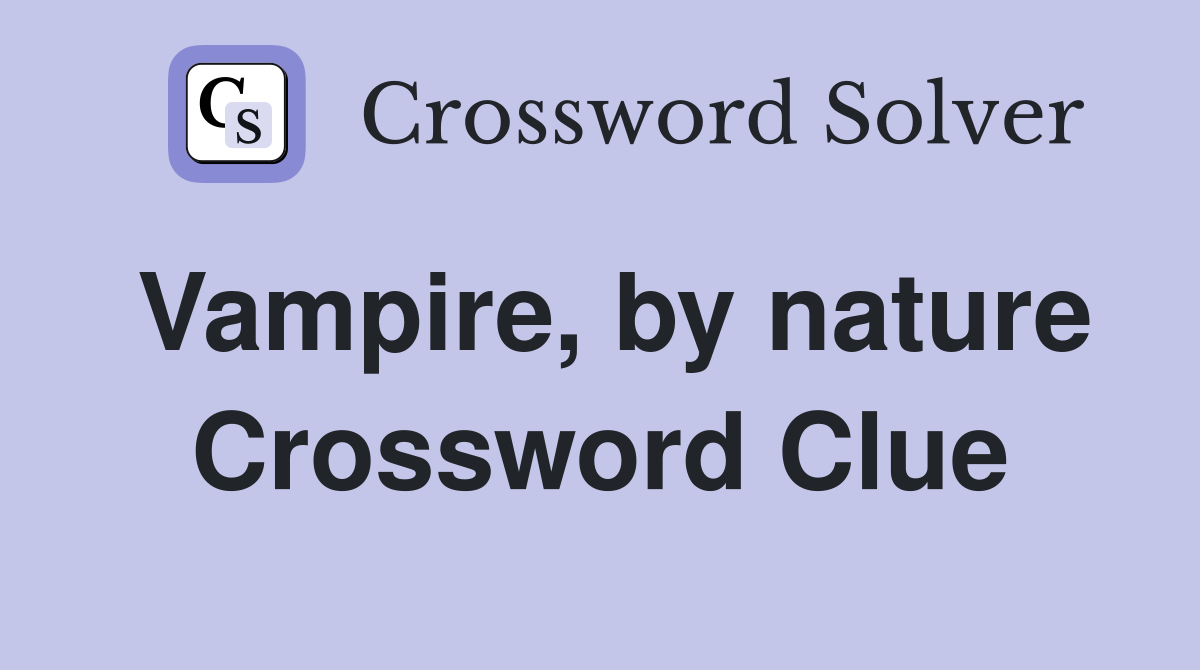 Vampire by nature Crossword Clue Answers Crossword Solver