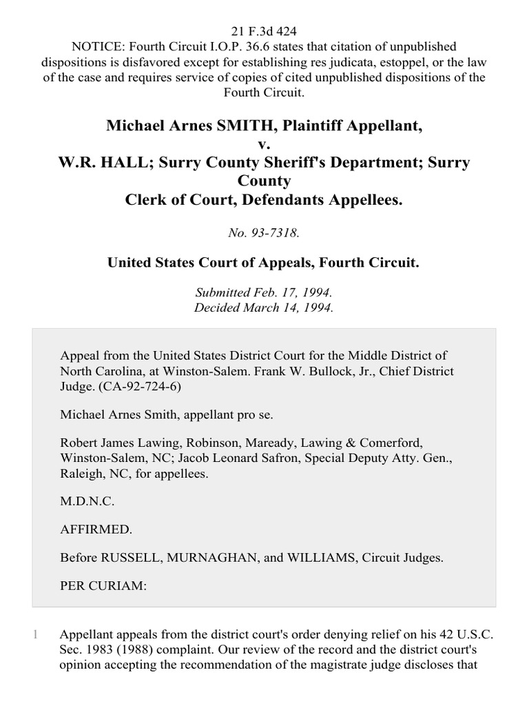 Michael Arnes Smith v W R Hall Surry County Sheriff s Department