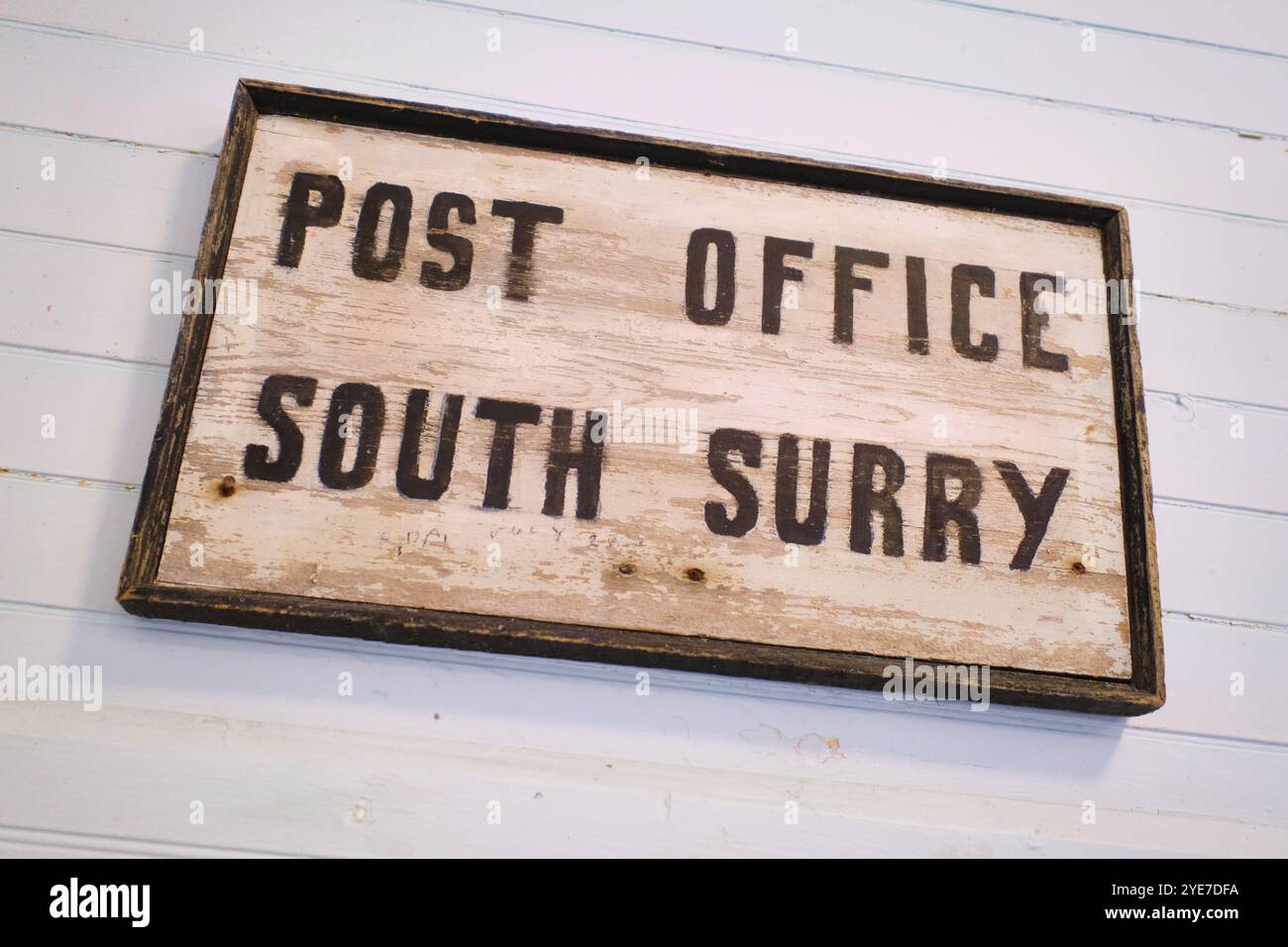 The old wood hand painted local post office sign of South Surry At