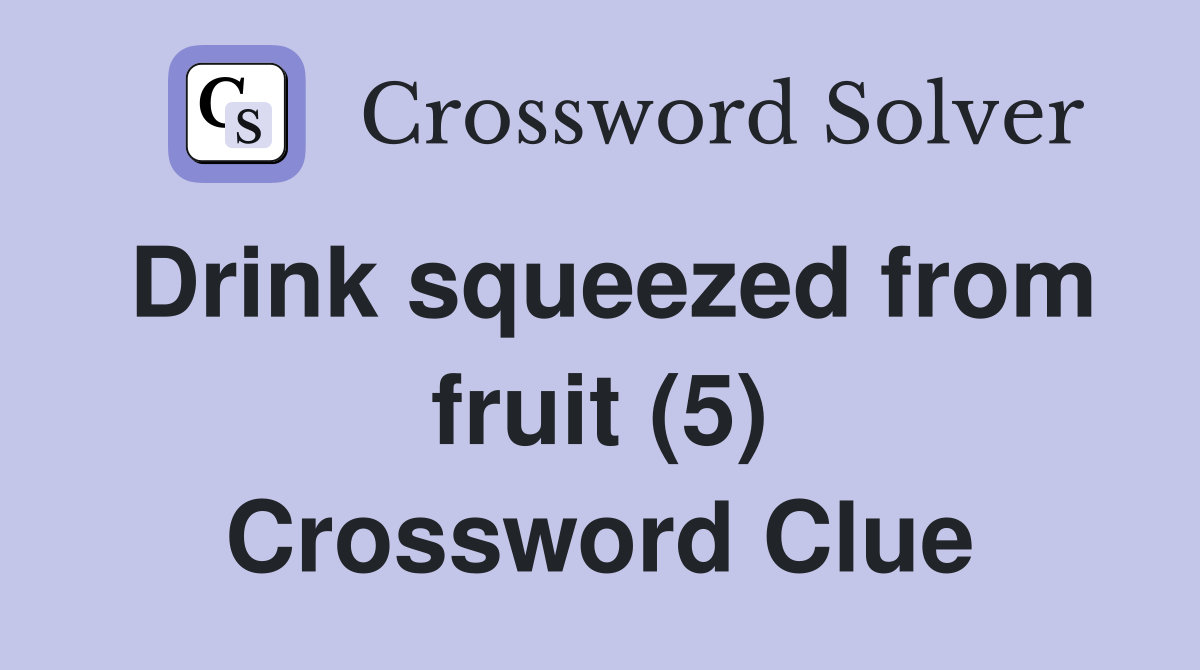 Drink squeezed from fruit (5) Crossword Clue Answers Crossword Solver