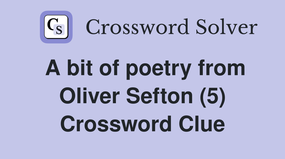 A bit of poetry from Oliver Sefton (5) Crossword Clue Answers