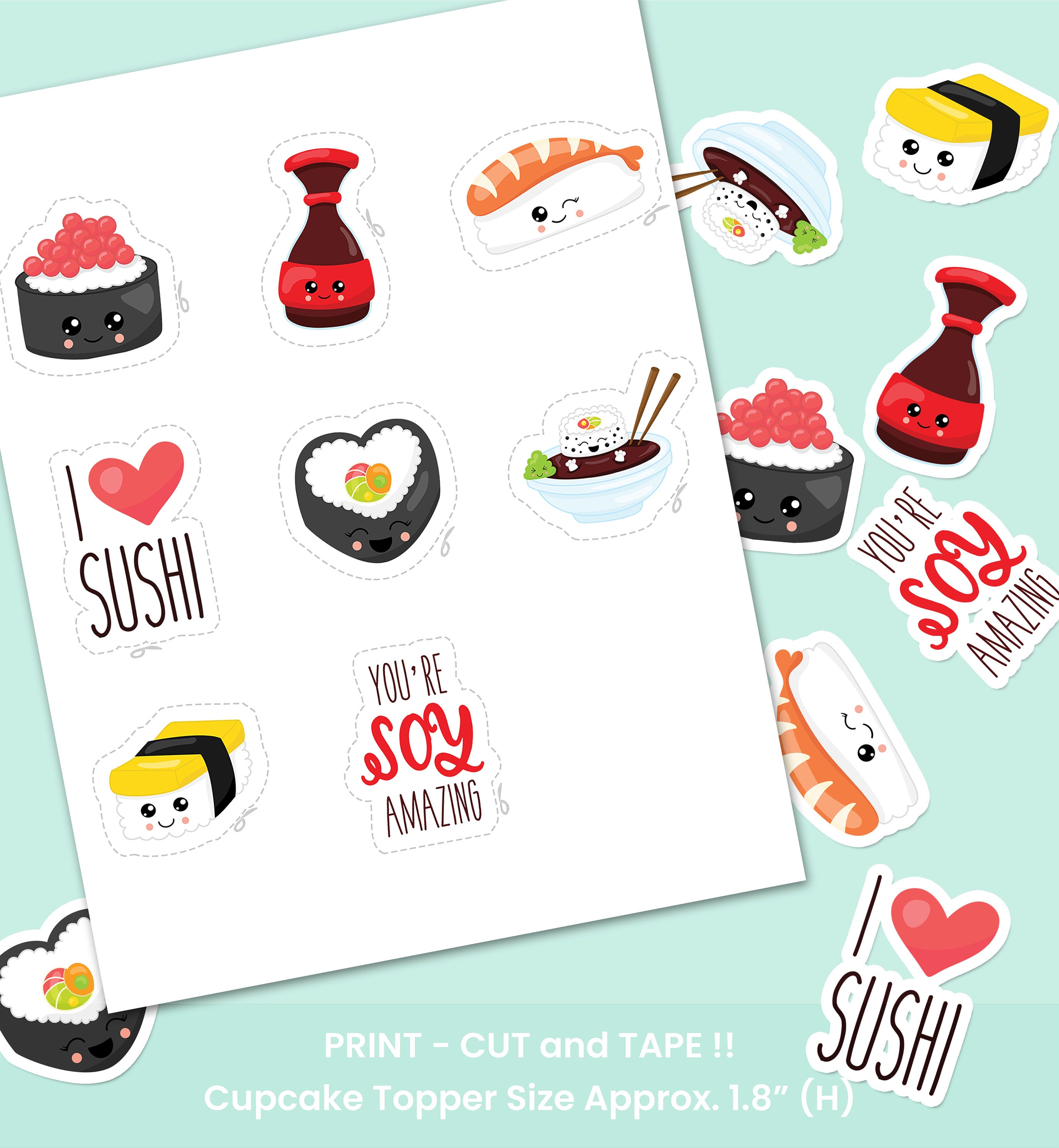 Instant Download Sushi Themed Cupcake Toppers Sushi Birthday Etsy