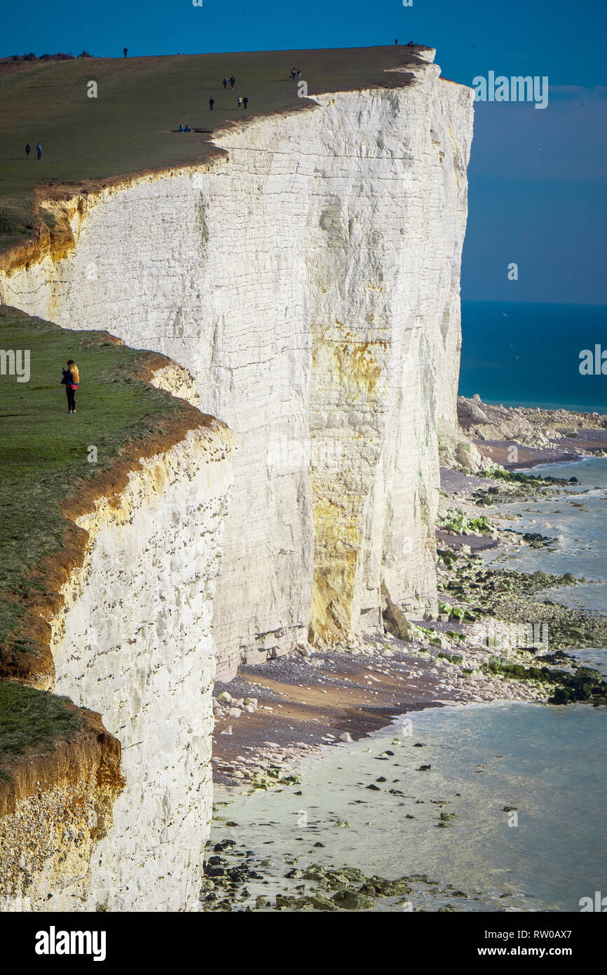 Famous Seven Sisters White Cliffs at the coast of Sussex England Stock