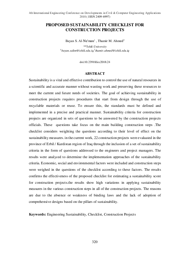 (PDF) Proposed Sustainability Checklist for Construction Projects