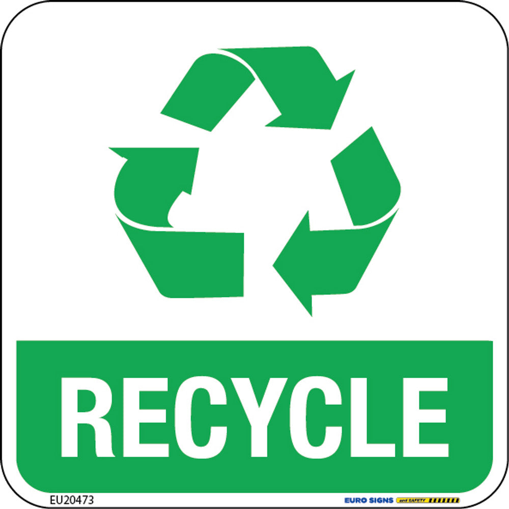 Sign RECYCLE graphic Grn/Wht 100 x 100mm DECAL Euro Signs Safety