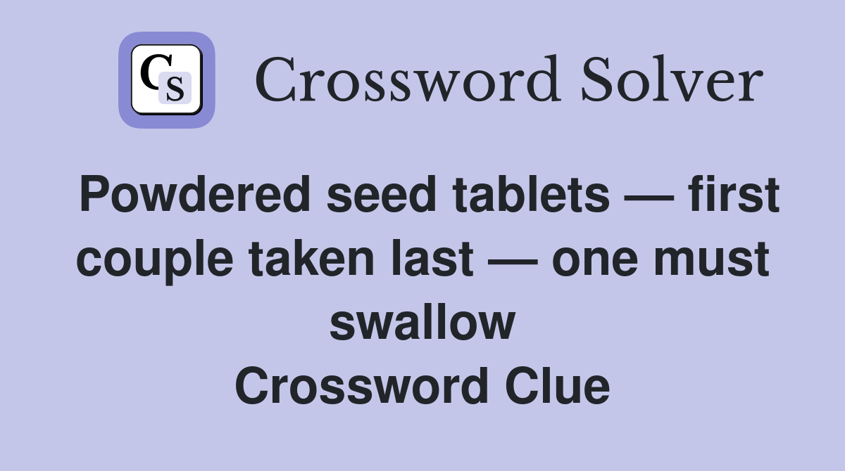 Powdered seed tablets first couple taken last one must swallow