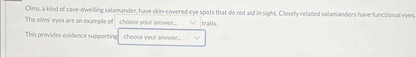 Solved Olms a kind of cave dwelling salamander have Chegg com
