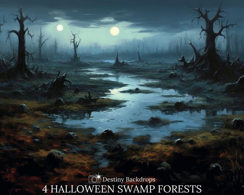 4 Halloween Swamp Forest Digital Backdrop Halloween Fog Spooky Forest