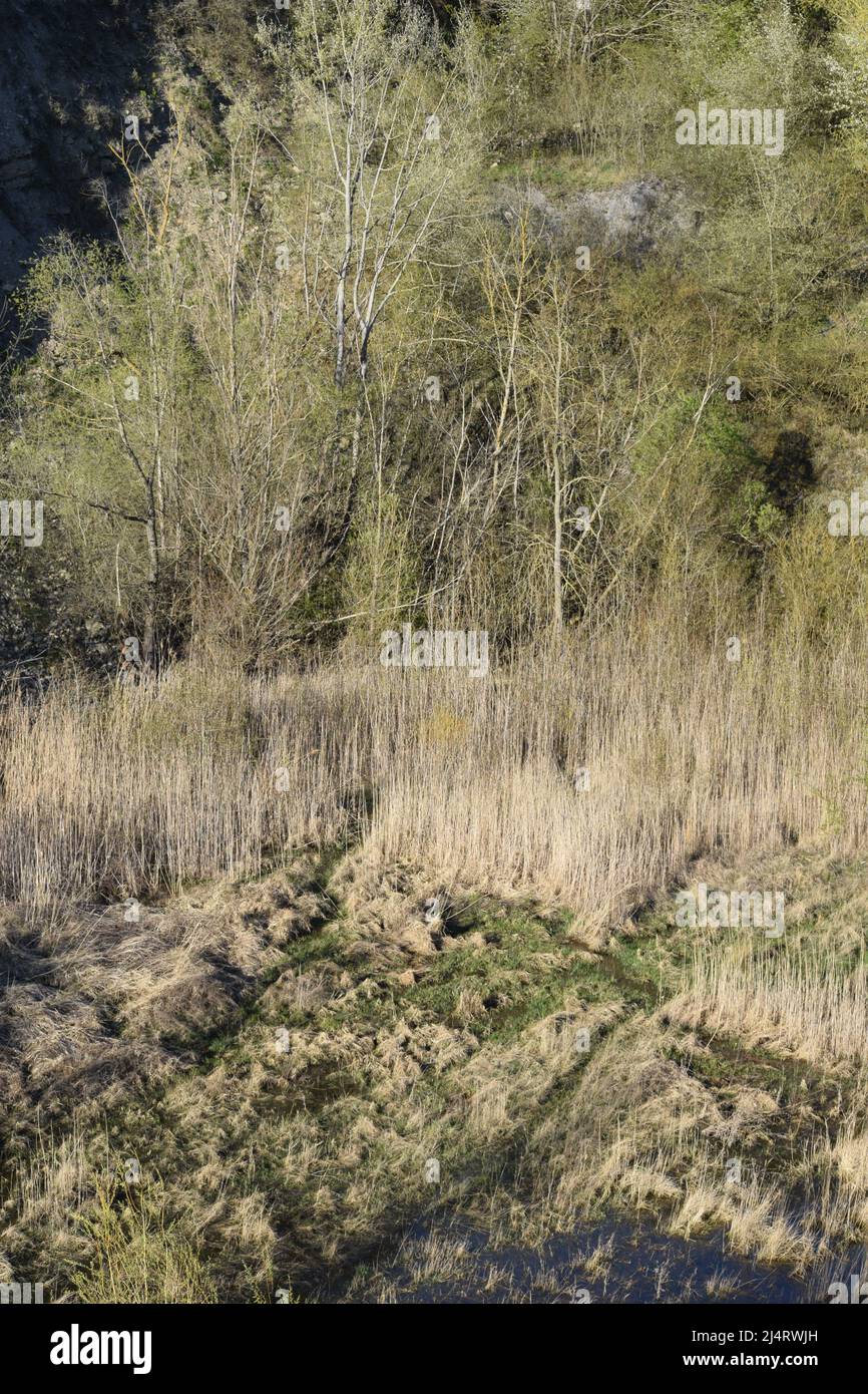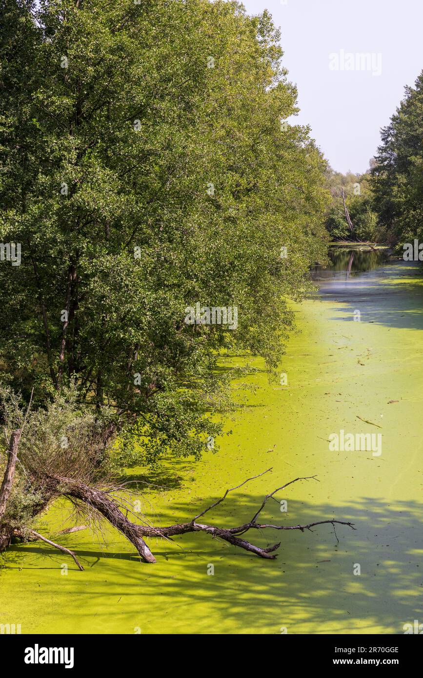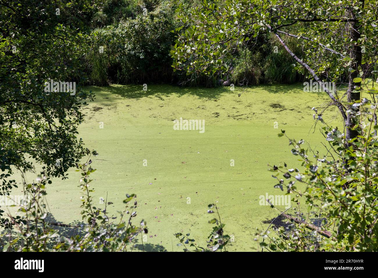 Swamp surrounded by forest Swampy land and wetland marsh bog Stock