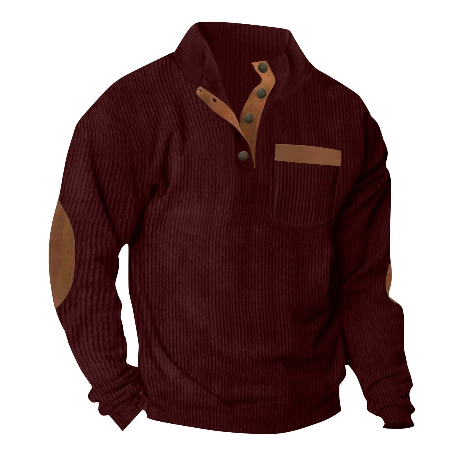 fatyb Mens Corduroy Pullover Button Stand Collar Sweatshirts Long