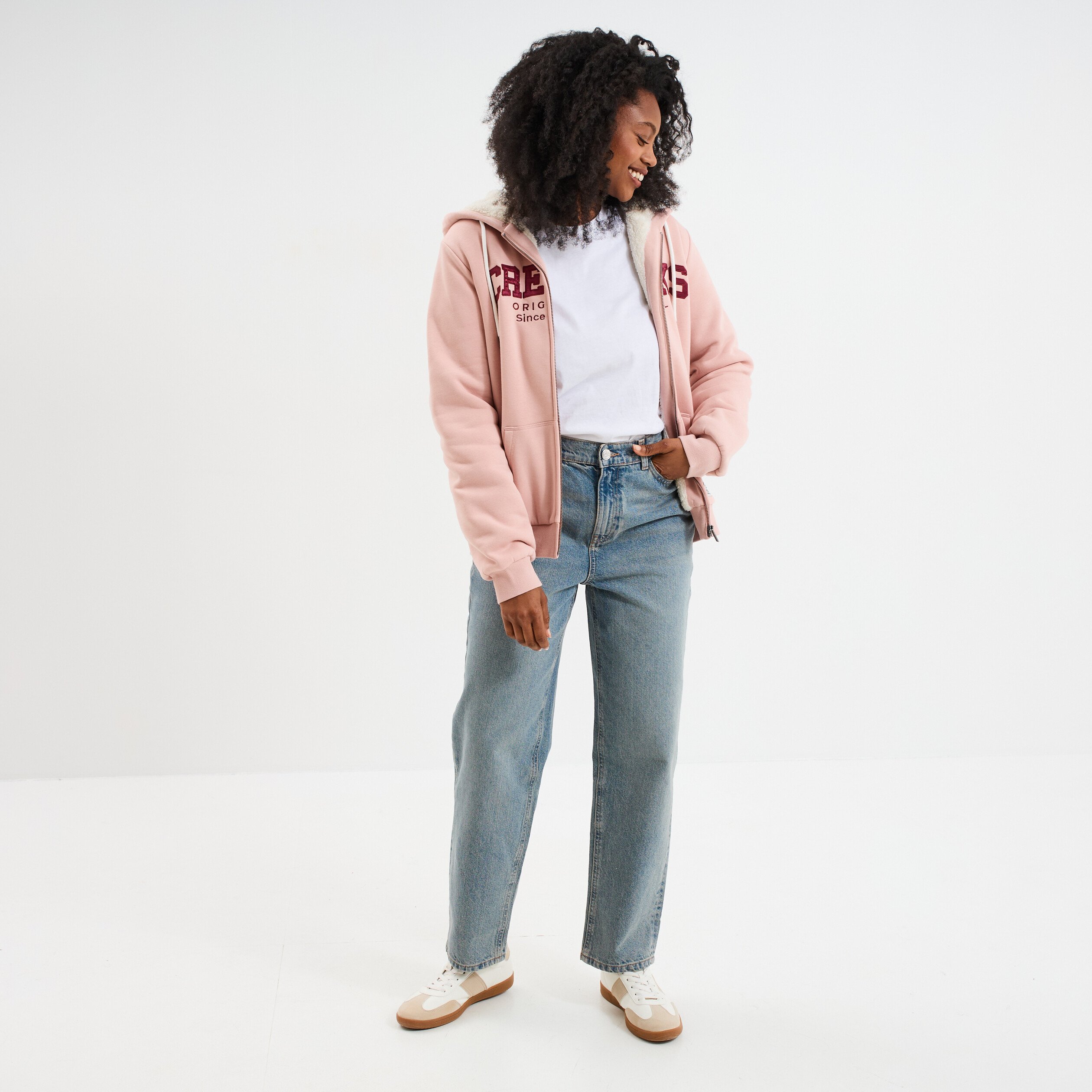 Sweat à capuche doublure effet sherpa rose poudrée femme La Halle