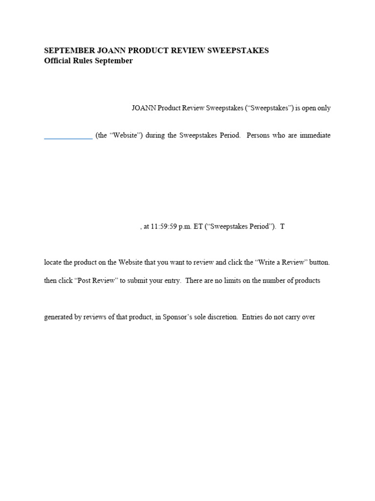 FY25 September JOANN Product Review Sweepstakes Terms Conditions PDF